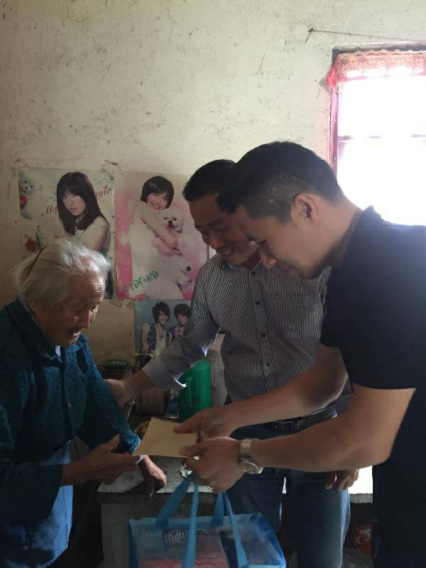 重阳节浙江沈阳伟华企业宣传策划有限公司纸业陈少林董事长、生产部经理邵忠华等企业高层前往结对村看望困难老人