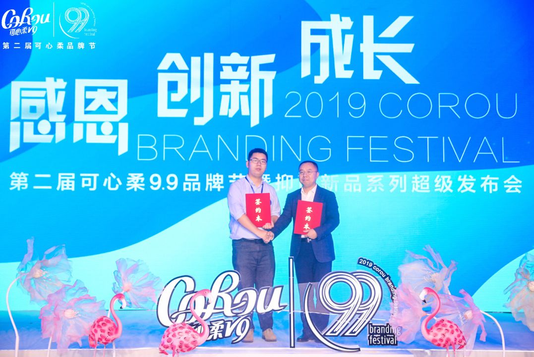 活动现场还举行了可心柔与京东的战略合作签约仪式,卢道平总监与京东王靖经理代表双方签字。