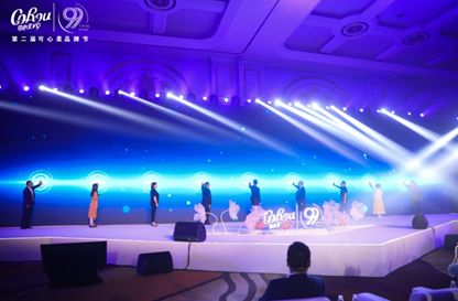 启动仪式环节,主持人伊一邀请曹振雷主任、陈少林董事长、卢道平营销总监等9位领导上台共同启动第二届可心柔9.9品牌节的序幕。